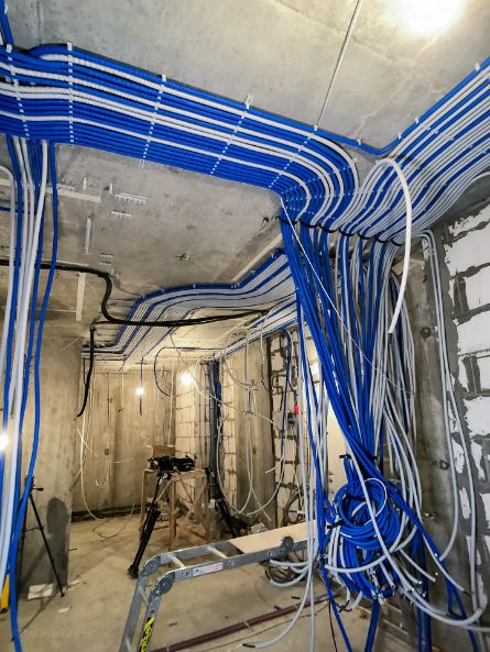 Прежде чем приступить к монтажу, специалисты проводят детальный расчет нагрузки на электрическую сеть. Это необходимо для правильного выбора кабеля, автоматов защиты и распределительного щита. На данном этапе важно учитывать количество потребителей электроэнергии, включая не только основные приборы, но и возможные дополнительные устройства, такие как кондиционеры, теплые полы, системы умного дома.
